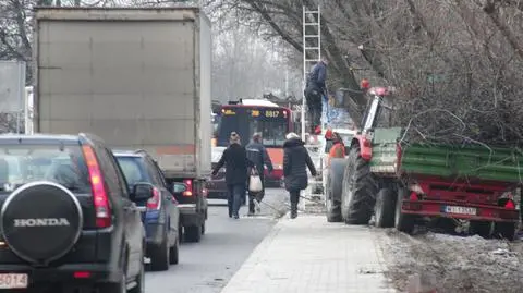 Rano trwały też prace przy wycince drzewa, które zablokowały drugi chodnik.