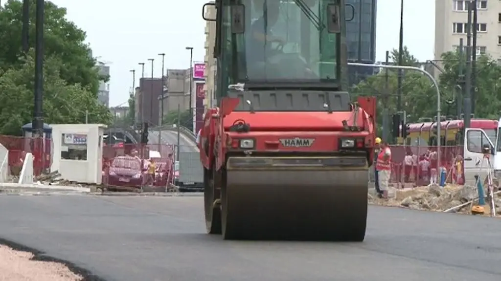 Tak wyglądało układanie asfaltu na jezdni przez rondo ONZ w kierunku Żoliborza: