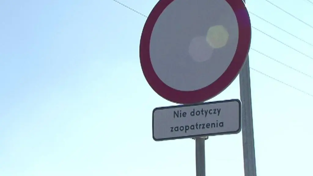 Chodzi o zjazd z Trasy Toruńskiej przed wiaduktem na ul. Głębockiej na teren centrum handlowego, który jest przeznaczony tylko dla dostawców towarów. Informuje o tym znak przy wjeździe.