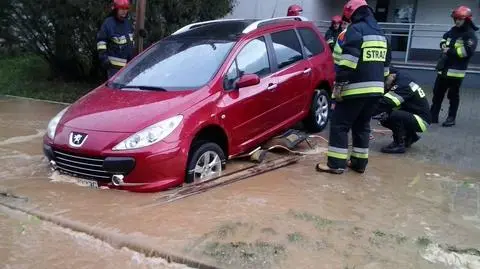 - Rozlewisko znajduje się na wysokości numeru 17. Woda cały czas się leje - relacjonował przed 11.00 Tomasz Zieliński, reporter tvnwarszawa.pl. - Najprawdopodobniej podmyty został chodnik. W zapadlisko przednimi kołami wjechał kierowca peugeota - dodał.