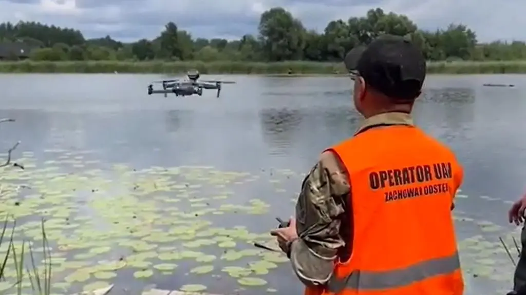 24 sierpnia strażnicy z oddziału specjalistycznego zajmowali się patrolowaniem z powietrza przy użyciu drona rejonu jeziora Gocławskiego. Zauważyli, że w miejscu oznaczonym, jako czarny punkt wodny, przebywa opiekunka z małym dzieckiem.