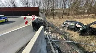 - Ze wstępnych ustaleń policji wynika, że kierowca nie dostosował prędkości i uderzył w bariery, następnie dachował. Na miejsce przyleciał helikopter Lotniczego Pogotowia Ratunkowego, który zabrał kierującego do szpitala. Policjanci przebadali go na zawartość alkoholu w wydychanym powietrzu, okazało się, że ma ponad dwa promile - podał Markiewicz. Samochodem podróżował również pasażer, na szczęście nie odniósł obrażeń.