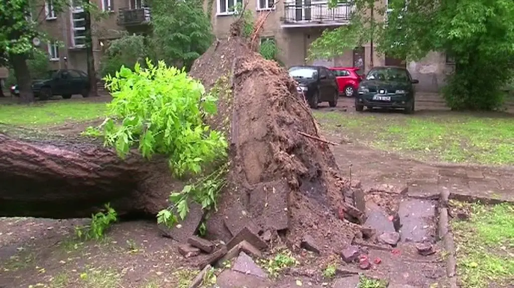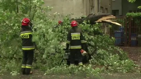 Drzewo spadło na dwa samochody przy ul. Kazimierzowskiej. Jedno z aut było zaparkowane, a drugie w ruchu. Do podobnej sytuacji doszło również na jednym z wolskich podwórek.