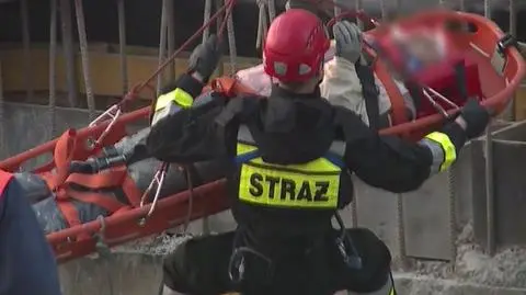 Strażacy do akcji wykorzystali stojący na budowie dźwig. - Do haka zostały zaczepione liny, na których strażacy opuścili się na dół. Po chwili ranny był już na powierzchni - relacjonuje Dawid Krysztofiński, reporter tvnwarszawa.pl.