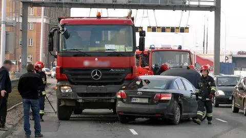 Do wypadku doszło po 14.00. - W wyniku zderzenia ciężarowego mercedesa i osobowej toyoty poszkodowana została kobieta- relacjonował Tomasz Zieliński, reporter tvnwarszawa.pl. -Od strażaków otrzymała kołnierz ortopedyczny - dodał.