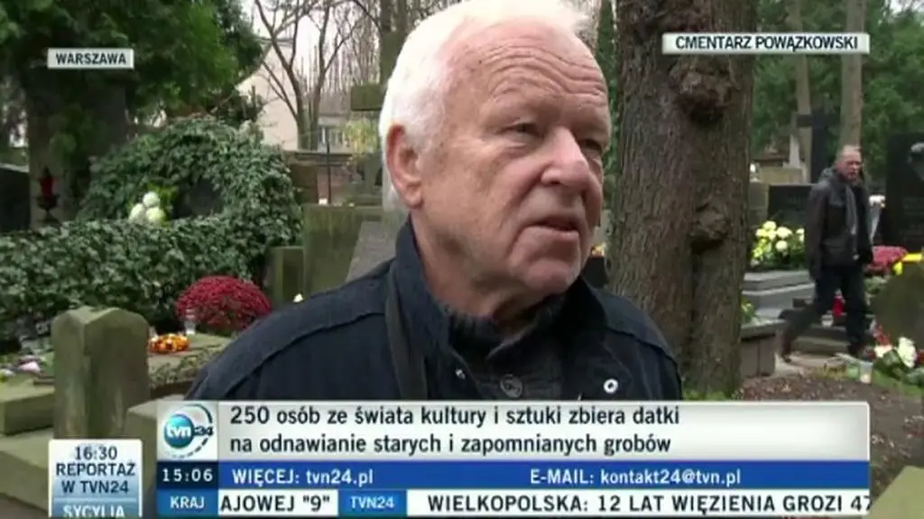 16:10 Na Starych Powązkach trwa kwesta na rzecz ratowania zabytkowych grobowców. - To bardzo szczytna akcja. Warto to robić, bo przecież to jest tak piękny cmentarz, że aż milo popatrzeć - podkreśla aktor Marian Opania.