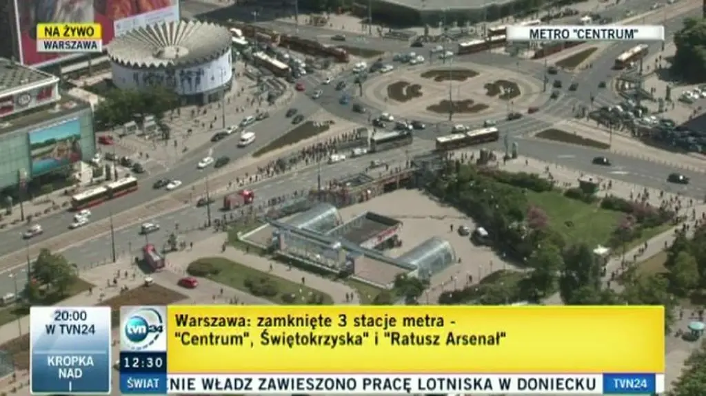 Wcześniej straż pracowała też na stacjach Ratusz, Świętokrzyska i Centrum. O godzinie 12.30 reporter tvnwarszawa.pl Tomasz Zieliński podał, że akcja w tych miejscach już się zakończyła, ale z metra w centrum nadal nie można było korzystać.