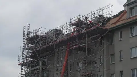 - Faktycznie na miejscu pojawiło się rusztowanie. Dostęp do dachu budynku, który najbardziej ucierpiał, jest utrudniony, dlatego najbezpieczniej dostać się na niego z poziomu platform. Z nich również zrzucane będą zniszczone elementy - wyjaśnił Jacek Frydryszak. I dodał, że rusztowanie nie zostanie szybko zdemontowane, bo będzie wykorzystywane podczas remontu elewacji.
