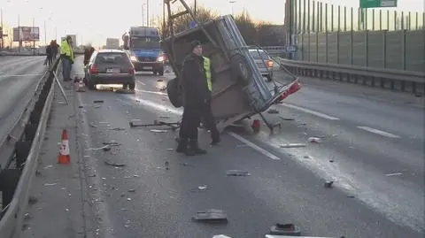 - Kierowca audi jechał al. Stanów Zjednoczonych w kierunku zjazdu na Wał Miedzeszyński. Prawdopodobnie inny kierowca zajechał mu drogę. Kierujący audi z dużą prędkością uderzył w przyczepkę drogowców informującą o zamkniętej drodze - relacjonował Lech Marcinczak, reporter tvnwarszawa.pl.