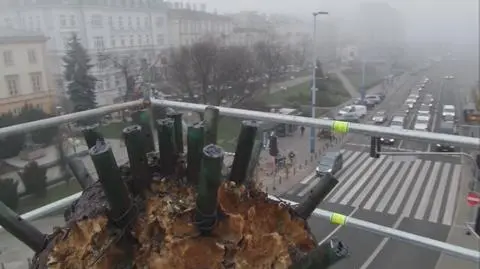 Prace przy palmie zaczęły się na początku grudnia.- Przeprowadzimy remont powłoki pnia, bo był w złym stanie. Schodzi już z niego kora, więc wymaga pilnej naprawy. Prace obejmą również liście – mówił w rozmowie z tvnwarszawa.pl Marcel Andino Velez z Muzeum Sztuki Narodowej. Jak informował Zarząd Dróg Miejskich, muzeum ma pozwolenie na zajęcie pasa drogi w związku z pracami renowacyjnym przy palmie do 18 grudnia.