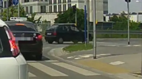 Nagle prawym pasem jedzie taksówka, kierowca decyduje się na skręt na zielonej strzałce. Coś, co wygląda na banalną, codzienną sytuację drogową zmienia się w sekundę we wstydliwy incydent. Na filmie nagranym przez Pawła widać, jak za okno taksówki od strony pasażera najpierw wypada jeden odpadek, a chwilę później - kolejne śmieci.