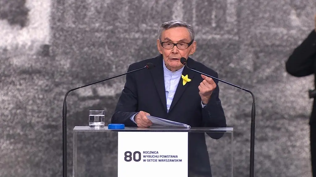 Marian Turski na obchodach w Warszawie. "Mam obowiązek powtórzyć wezwanie: ludzie, nie bądźcie obojętni na zło"
