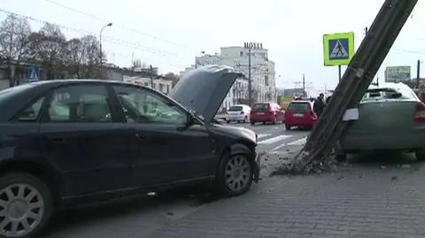 - Dwa samochody osobowe otarły się o siebie jadąc al. Krakowską w kierunku Raszyna za Łopuszańską - relacjonuje Dawid Krysztofiński, reporter tvnwarszawa.pl. - Jedno z tych aut - audi - uderzyło później w pobliski słup energetyczny - dodaje.