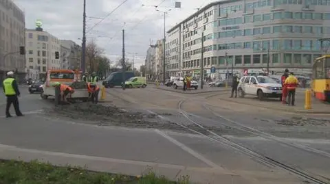 I dodaje, że na miejsce przyjechały służby sprzątające i policja. - Trochę betonu jest również na torach, stąd obecność służb Tramwajów Warszawskich - zaznacza Zieliński.
