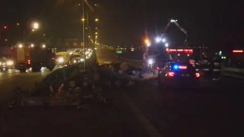 - Według wstępnych informacji samochód ciężarowy się przechylił, uderzył w barierki i wywrócił. Bale znalazły się również na jezdni w przeciwnym kierunku, trasa jest zablokowana - informowała o godz. 16 Ewa Sitkiewicz z biura prasowego Komendy Stołecznej Policji. - Kiedy bale leżały już na jezdni, na trasie doszło do kolejnej kolizji, samochód osobowy również uderzył w barierki - dodała.