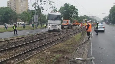Do zdarzenia doszło przed godz. 7. Samochód ciężarowy jadący w stronę Kercelaka wpadł w poślizg, staranował barierki i stanął na torach. - Zablokowany był przejazd dla tramwajów w obu kierunkach, a także po jednym pasie drogi pomiędzy Karcelakiem a Prymasa Tysiąclecia - mówi Lech Marcinczak, reporter tvnwarszawa.pl i dodaje, że nikomu nic się nie stało.