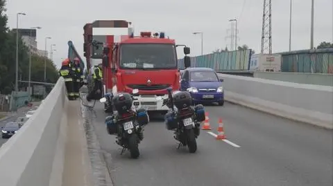 Jak opisywał Tomasz Zieliński z tvnwarszawa.pl, unieruchomiony pojazd to duża ciężarówka wyposażona w kontener przewożący złom. - Doszło w niej do awarii hamulców, które się zacisnęły - precyzował.
