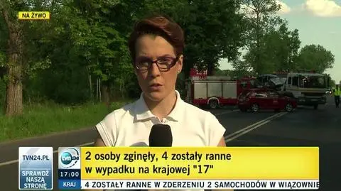 - Około godziny 13.30 doszło do czołowego zderzenia dwóch samochodów - forda i bmw. Dwie osoby podróżujące fordem poniosły śmierć na miejscu - poinformował na antenie TVN24 Jarosław Sawicki z policji w Otwocku.
