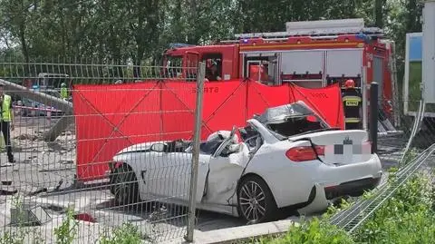 Na Gwarków pojechał nasz reporter Lech Marcinczak. - Kierowca uderzył w słup. Ten w wyniku uderzenia przechylił się. BMW zostało kompletnie zniszczone Na miejscu pracuje policja i straż pożarna - relacjonował.