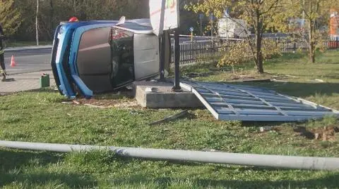 Jak dodał, po drodze samochód uszkodził bilbord i latarnię. - Na miejscu są strażacy, którzy spuszczają paliwo z chevroleta. Jeden pas ruchu jest zablokowany, nie ma dużych utrudnień - relacjonował Marcinczak.