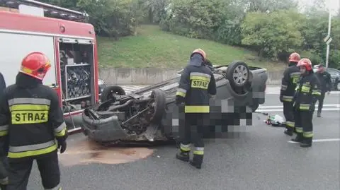 - Taksówka uderzyła w prawidłowo zaparkowany samochód po czym dachowała. Kierowca został zabrany do szpitala - relacjonował reporter tvnwarszawa.pl Artur Węgrzynowicz. Drugie z aut, renault, wpadło na chodnik i uderzyło w ogrodzenie kamienicy.