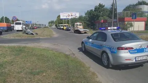Kierowca jechał samochodem z żoną, która w efekcie wypadku została odwieziona do szpitala. On sam na miejscu został zbadany alkomatem.