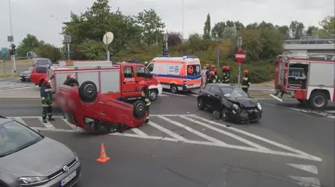Policja zgłoszenie wypadku dostała o 10.40. - Na skrzyżowaniu zderzyła się alfa romeo z fiatem. W wyniku wypadku fiat dachował - informowała Iwona Jurkiewicz ze stołecznej policji.
