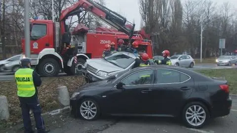 Z kolei nasz reporter opisywał, że kierowca fiata przeciął pas zieleni, uszkodził słupki, uderzył w lexusa i na nim zawisł. - Zablokowany jest lewy pas w kierunku pomnika Lotnika - ostrzegał Artur Węgrzynowicz.