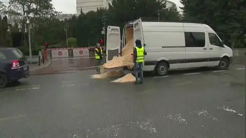 Greenpeace zorganizowało swoją akcję na ulicy Wiejskiej przed południem. Z samochodu wyrzucono masę trocin, które zaległy na jezdni.