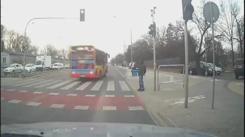 - Widziałem w lusterku, jak autobus zbliża się do mojego auta, po czym specjalnie zjeżdża na środowy pas, aby mnie ominąć i wjechać na czerwonym. Później autobus ostro skręcił ze środkowego pasa na zatoczkę autobusową, gdzie miał przystanek - relacjonuje autor nagrania, który chce pozostać anonimowy.