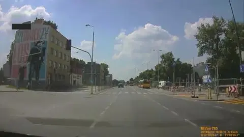 Kamera zainstalowana w jego aucie nagrywała akurat przejazd Radzymińską w stronę centrum.