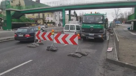 W poniedziałek wieczorem, na miejscu był nasz reporter Tomasz Zieliński. - Na wygrodzonej części jezdni stoi między innymi koparka, zerwana jest część nawierzchni, w ziemi jest dość duża dziura. W tej chwili, nie toczą się tu żadne prace. Nie ma żadnych pracowników - opisywał Zieliński.