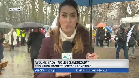 - Wolne samorządy i wolne sądy to są dwa najważniejsze hasła marszu - relacjonował przed rozpoczęciem demonstracji Radomir Wit reporter TVN24, który był przed Kancelarią Premiera.