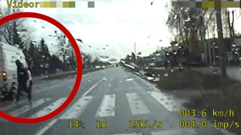 Funkcjonariusze zatrzymali się przed oznakowanym przejściem dla pieszych, by na drugą stronę mógł swobodnie przejść młody mężczyzna stojący tuż przy przejściu. Inne zachowanie zaprezentował kierujący mercedesem sprinterem, który przejechał tuż przed pieszym będącym już w połowie przejścia. - 41-latek nie zareagował na to, że na pojazd znajdujący się na pasie obok, zatrzymał się by przepuścić pieszego. Nie spodziewał się również, że jest to nieoznakowany radiowóz, a jego wyczyn rejestruje kamera - poinformowała starsza aspirant Magdalena Gąsowska, rzeczniczka piaseczyńskiej policji.