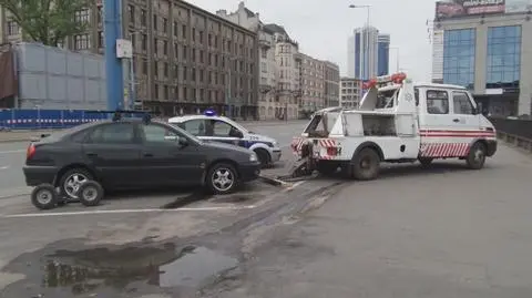 Taką sytuację zaobserwował reporter tvnwarszawa.pl Artur Węgrzynowicz. - Straż miejska odholowuje właśnie auto zaparkowane w Alejach Jerozolimskich, pomiędzy rondem Czterdziestolatka a Żelazną - relacjonował w środę rano.