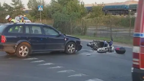 Motocykl uderzył w przedni bok auta. - Kierowca jednośladu trafił do szpitala - informowała Monika Brodowska z Komendy Stołecznej Policji.