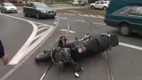 Po uderzeniu motocyklista wylądował na torowisku w rejonie skrzyżowania ul. Rakowieckiej z ul. św. Andrzeja Boboli.