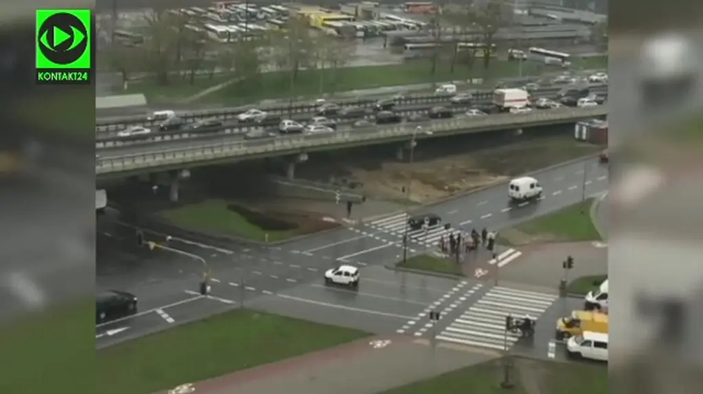 - Po mieście jeździ się wygodnie, samochodów jest niewiele. Widoczna jest policja. Warto jednak nie wykorzystywać sytuacji i nie naciskać zbyt mocno na pedał gazu, bo pada a na ulicach jest ślisko - ostrzega reporter tvnwarszawa.pl Lech Marcinczak.