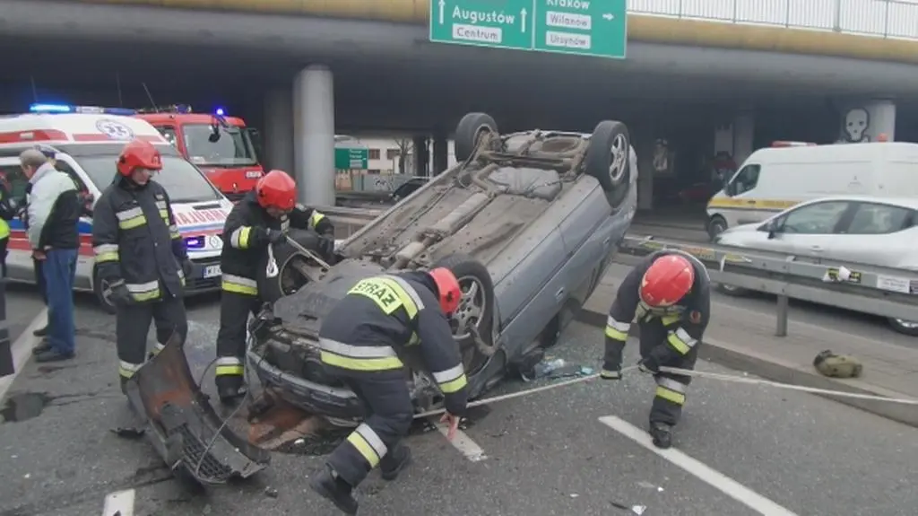 Do zdarzenia doszło około 13.00. - Według relacji, świadków kierowca jeepa chciał zmienić pas i skręcić w lewo na trasę w kierunku węzła Marsa. W trakcie manewru zajechał drogę kierowcy opla - relacjonuje Artur Węgrzynowicz, reporter tvnwarszawa.pl. - Doszło do zderzenia, w wyniku którego opel dachował - dodaje.