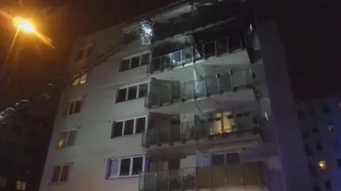 Zniszczeniu uległ także samochód zaparkowany przy bloku pod balkonami. - Na niego spadały płonące elementy. Niestety, nie było już czasu żeby go przestawić - dodał Zieliński.