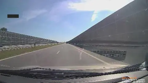 Jak widzimy na nagraniu, na pasie zieleni oddzielającym jezdnie stoi samochód, a nieopodal niego mężczyzna. Są też dwa psy - jeden biega po pasie zieleni, a drugi po jezdni. - Pies miota się na środku drogi. Motocyklista zwalnia, ja też zwalniam, natomiast czerwona skoda uderza w tył mojego samochodu i koziołkuje kilkadziesiąt metrów - relacjonuje kierowca, od którego otrzymaliśmy film.