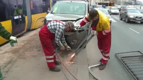 Citroen skosił 6 barierek. Zostały one wycięte przez służby Tramwajów Warszawskich.