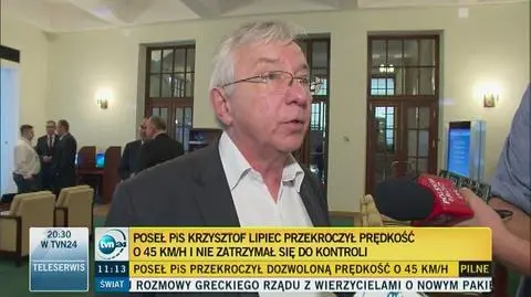 Dziennikarze dopytywali, dlaczego od razu nie przyjął mandatu? – Nie warto. Jestem zobowiązany jako osoba, którą państwo chroni immunitetem poinformować tego typu organy, że jestem tym immunitetem chroniony i policjanci wiedzą, jakie czynności należy wykonywać - wyjaśnił Lipiec. - Przepraszam za to, że popełniłem to wykroczenie. W jakimś sensie zawiodłem swoich wyborców – oświadczył.Ale szybko dodał, że takie wykroczenie może się zdarzyć każdemu. - Jeszcze w sytuacji takiej: droga pusta, noc – przekonywał polityk PiS.Na pytanie, dlaczego jechał tak szybko, odparł, że spieszył się do Warszawy, na obrady sejmowe.ran/b