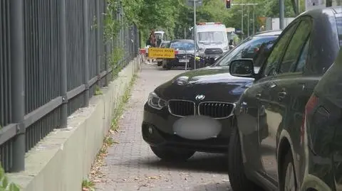 - BMW zaparkowane jest tak, że zajmuje prawie cały chodnik. Osoby idące chodnikiem muszą się przeciskać pomiędzy przodem auta, a wystający tył auta utrudnia życie uczestnikom ruchu - mówił nasz reporter Artur Węgrzynowicz.