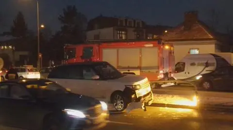Po uderzeniu w latarnię słup przewrócił się i uszkodził samochód. - Nowy Range Rover został mocno uszkodzony - relacjonował Tomasz Zieliński, reporter tvnwarszawa.pl.
