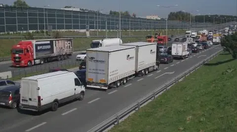 Zablokowane były dwa pasy w stronę Marek: lewy i środkowy.