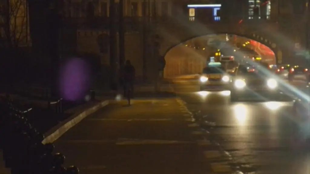Leniwa atmosfera kończy się, kiedy na horyzoncie pojawia się pędzący pieszy. Najprawdopodobniej jest to mężczyzna, choć jakość nagrania nie pozwala jednoznacznie tego ocenić. Podobnie jak stwierdzić, czy powodem desperackiego sprintu była chęć zdążania na autobus.