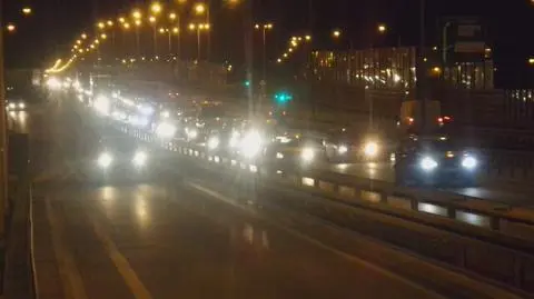 Auto osobowe stało na skrajnie lewym pasie w okolicy ulicy Bora-Komorowskiego, jadąc od Płowieckiej w kierunku Wisły. - Ma włączone światła awaryjne - relacjonował nasz reporter.