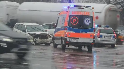 Na miejscu była policja. - Doszło do zderzenia mercedesa z fordem. Jedna osoba została przewieziona do szpitala - informowała Edyta Adamus z sekcji prasowej stołecznej policji.
