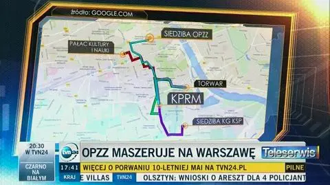 Jedna kolumna ruszy o godz. 11.30 sprzed siedziby OPZZ przy ul. Kopernika i przejdzie Świętokrzyską, skręci w Jasną i z Kruczej w Aleje Jerozolimskie do Brackiej. Dalej trasa tej grupy będzie wiodła przez plac Trzech Krzyży przed KPRM w Alejach Ujazdowskich.